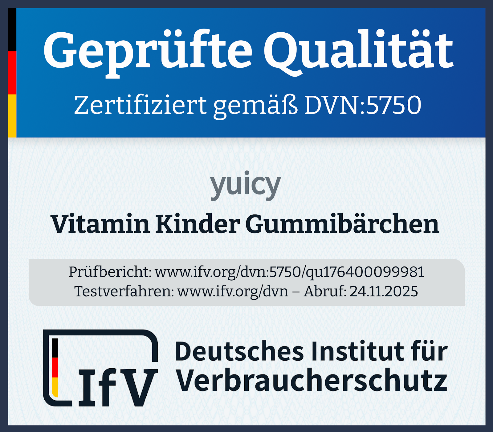 yuicy® setzt auf ein eigens entwickeltes Herstellungsverfahren, bei dem die Vitamin-Gummibärchen bei Raumtemperatur gegossen werden. Dadurch sollen hitzeempfindliche Inhaltsstoffe bestmöglich geschützt werden. Die Produktion erfolgt in IFS-zertifizierten Anlagen, die verwendeten Vitamine stammen überwiegend von etablierten Herstellern aus Deutschland.